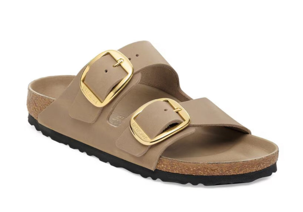 Der Arizona ist der klassische Zweiriemer von BIRKENSTOCK. Die Variante Big Buckle zeigt sich mit einer großen, eleganten Dornschnalle – ein toller, markanter Blickfang auf der ansonsten schlicht gehaltenen Sandale. Die Decksohle des Halb-Exquisit-Fußbettes ist mit weichem Glattleder bezogen und farblich auf den Schuh abgestimmt. Das Obermaterial besteht aus besonders dickem, geöltem Nubukleder, das offenkantig verarbeitet wurde.