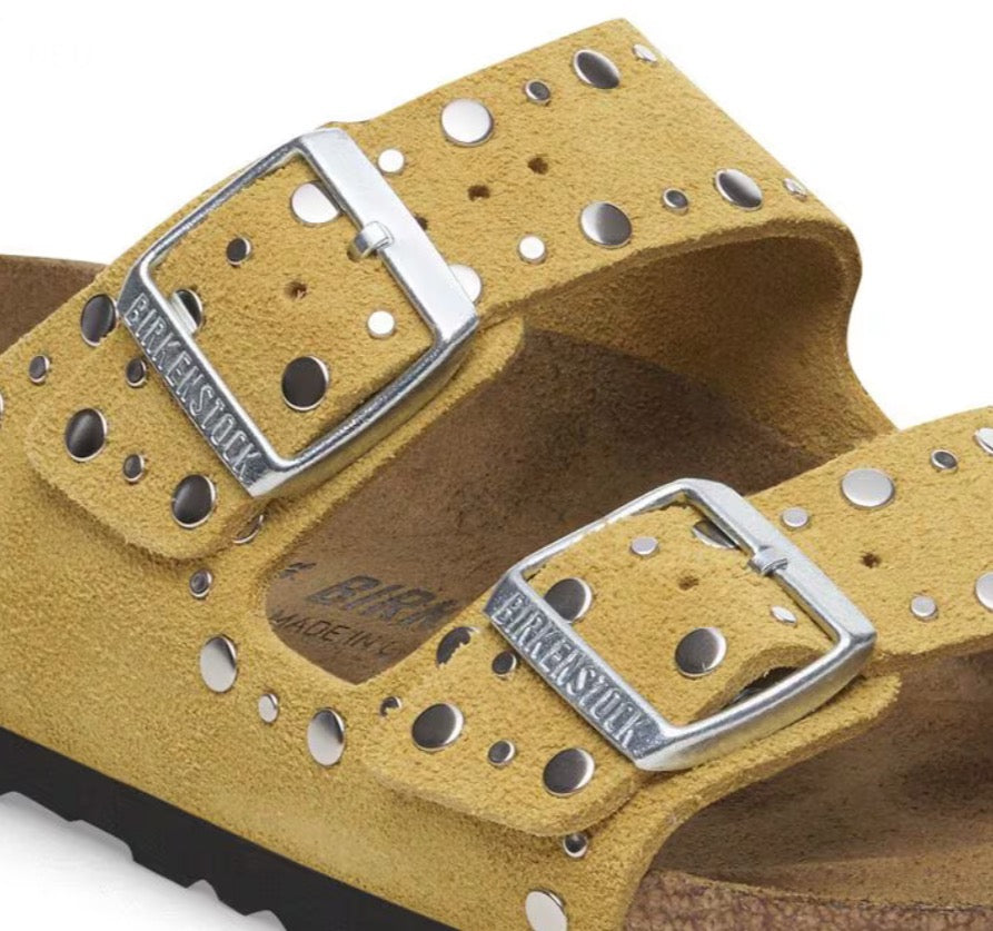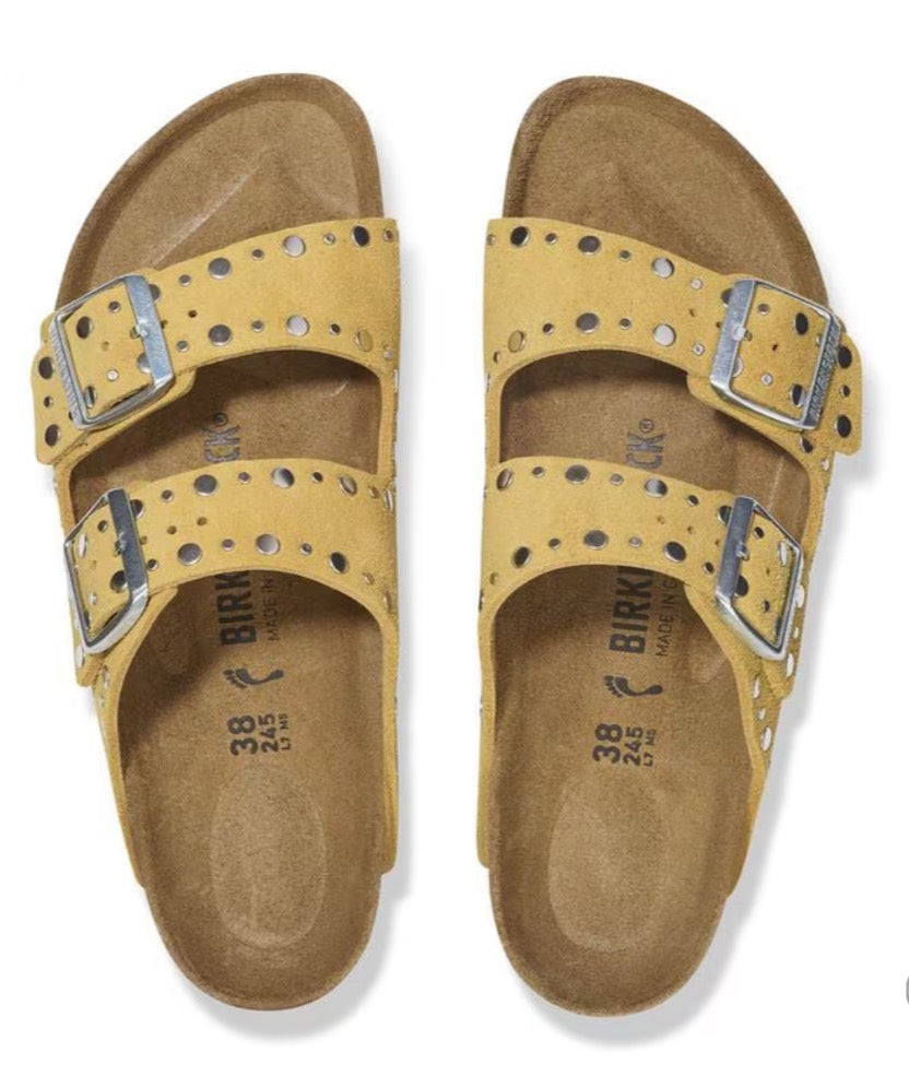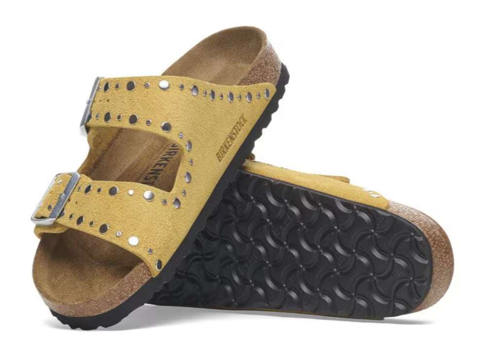 Der Arizona ist der klassische Zweiriemer von BIRKENSTOCK. Diese Sandale ist aus Veloursleder, mit präzise gesetzten Nieten, die ohne Gegenstück besonders fest, aber nicht tief ins Leder eindringen und somit beim Tragen dank des aufwändigen Herstellungsprozesses nicht stören. Das Fußbett ist ergonomisch geformt, aus Veloursleder und bietet einen angenehmen Tragekomfort.