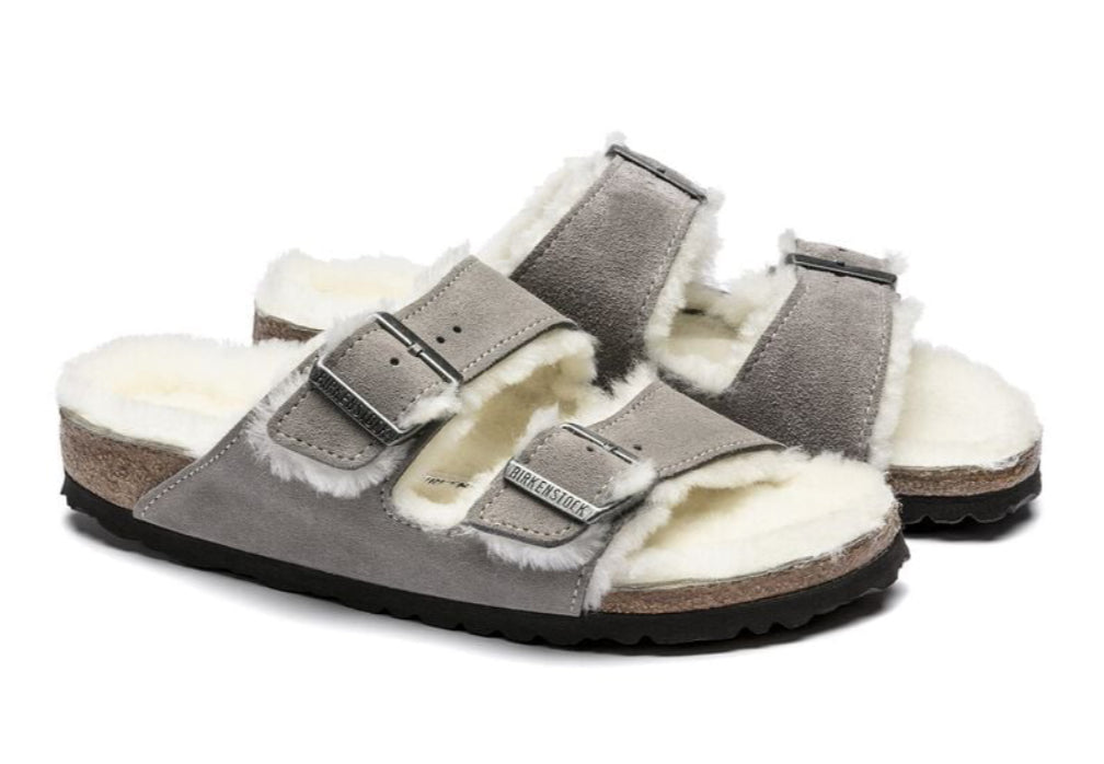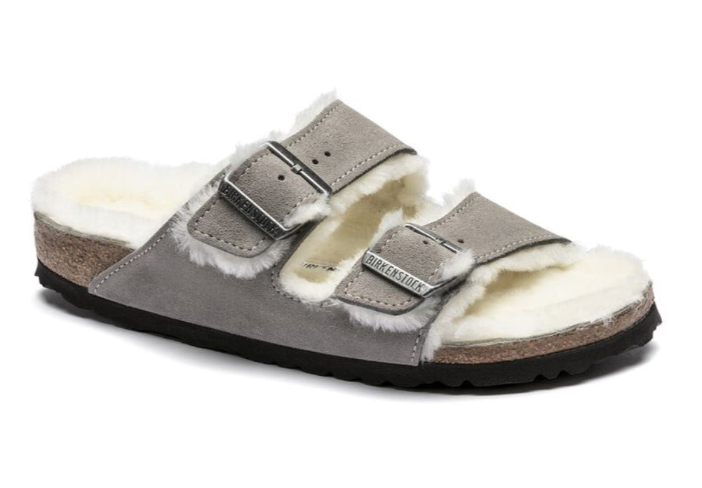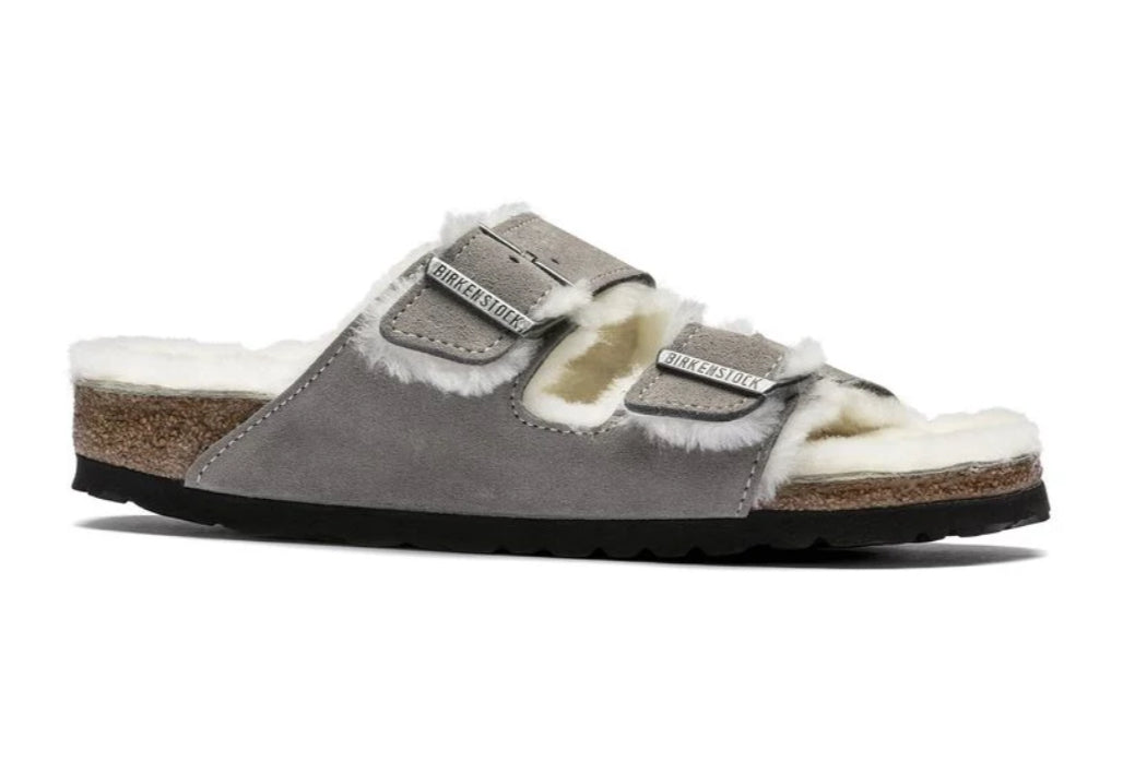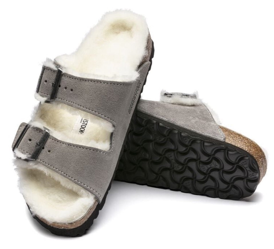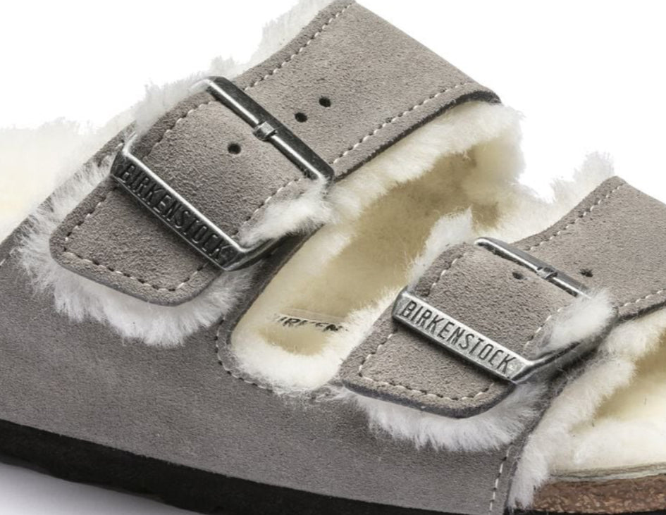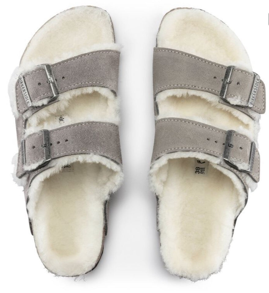 Birkenstock Arizona Suede Leather Shearling Stone Coin 1017402