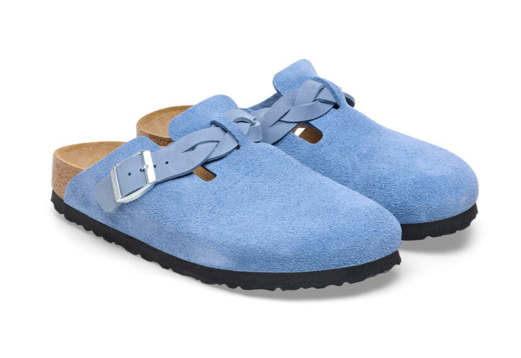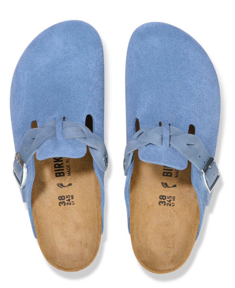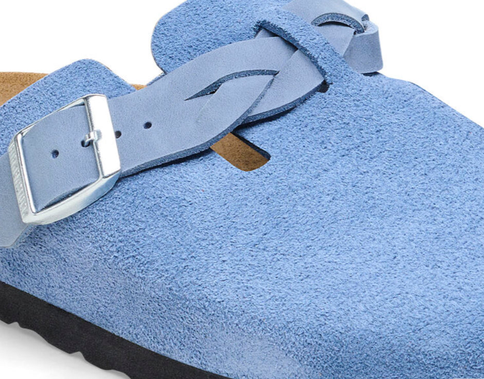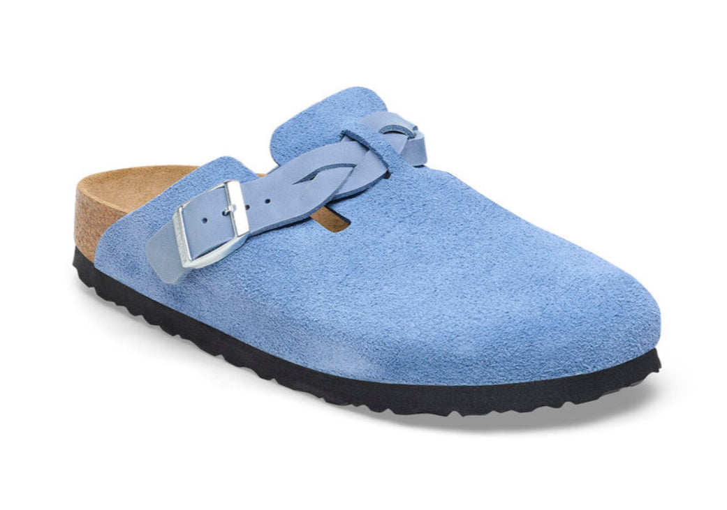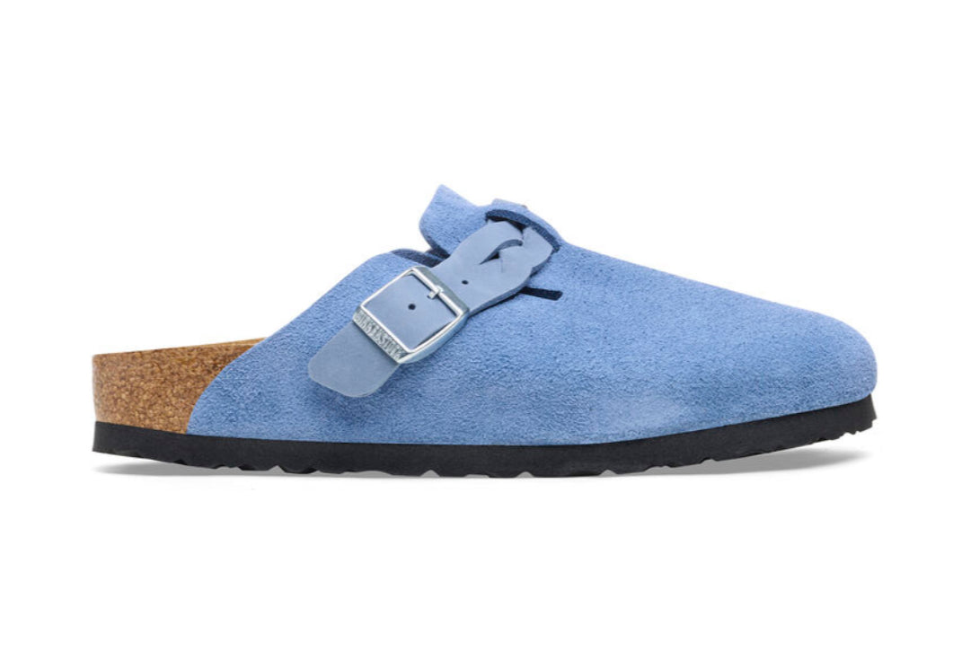 Der Boston von BIRKENSTOCK ist ein absoluter Klassiker. Diese Sandale aus besonders weichem Veloursleder hat einen geflochtenen Riemen im Boho-Style. Das Fußbett ist ergonomisch geformt, aus Kork-Latex und mit Veloursleder bedeckter EVA-Sohle.