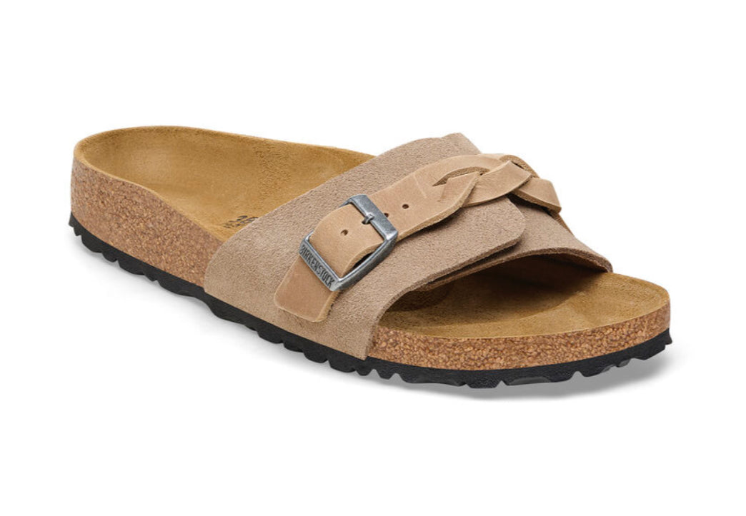 Der BIRKENSTOCK Oita ist von dem Klassiker Kyoto inspiriert. Im Gegensatz zu diesem ist das Design etwas schlanker und femininer. Die geflochtene Schnalle ist das optische Highlight von diesem Schuh. Das Obermaterial ist aus Veloursleder, besonders weich und anschmiegsam. Das Fußbett ist ergonomisch geformt, aus Kork-Latex, mit Veloursleder bedeckt und bietet einen angenehmen Tragekomfort.