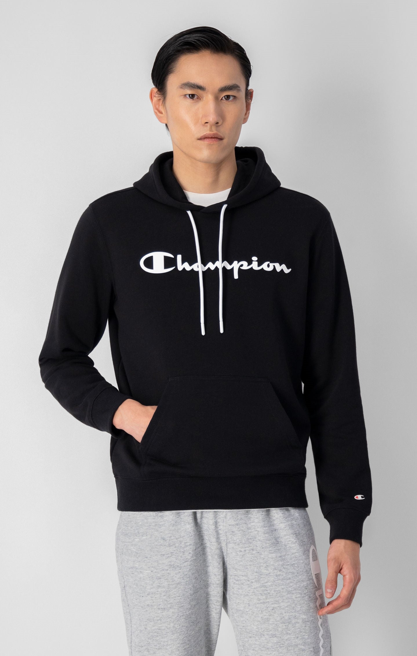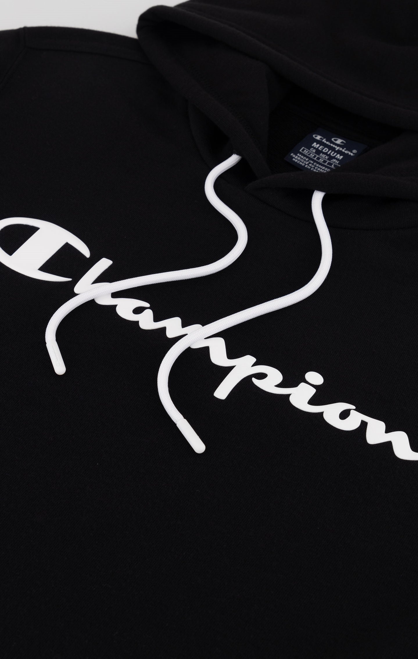 Klassischer Hoodie mit Champion Schriftzug aus der Legacy Kollektion. Durch das weiche Innenfutter und den Comfort Fit, super bequem und gemütlich. Das Material besteht zu 51% aus Baumwolle und 49% Polyester.