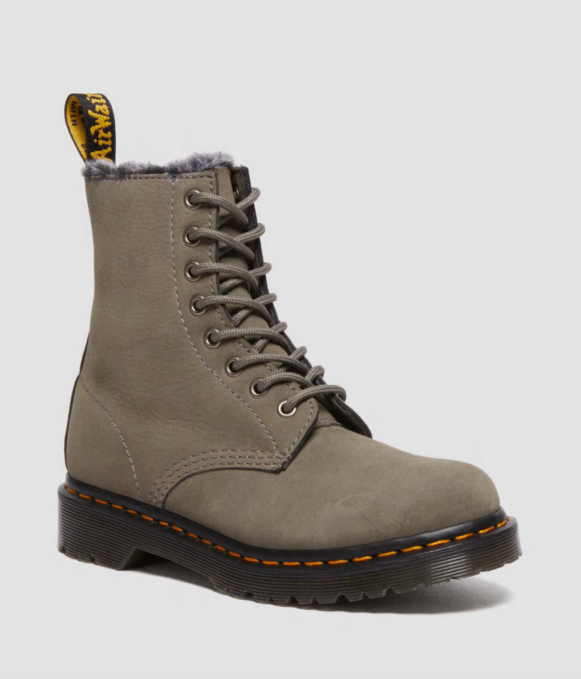 Dieser Schnürschuh von Dr. Martens ist mit Kunstfell gefüttert und aus einem weichen Nubukleder. Er überzeugt durch das besonders robuste Leder und die angenehme Dämpfung der Air Cushion Sohle. Die Silhouette ist feminin und durch das besonders weiche Leder bleibt einem das lange Einlaufen erspart. Anziehen und wohlfühlen, heißt es bei deinem Schuh. Durch die Wärme und die Bewegung des Fußes passt sich das Leder an und wird noch weicher. Dieses Modell fällt normal aus und passt in der regulären Schuhgröße.