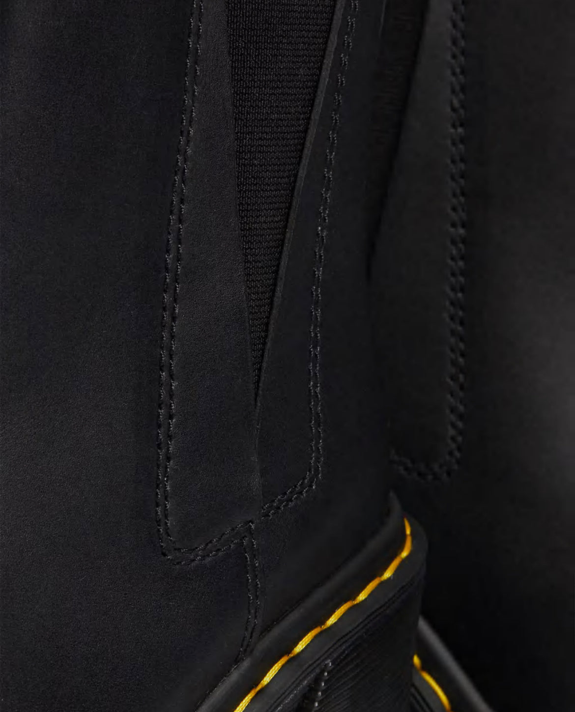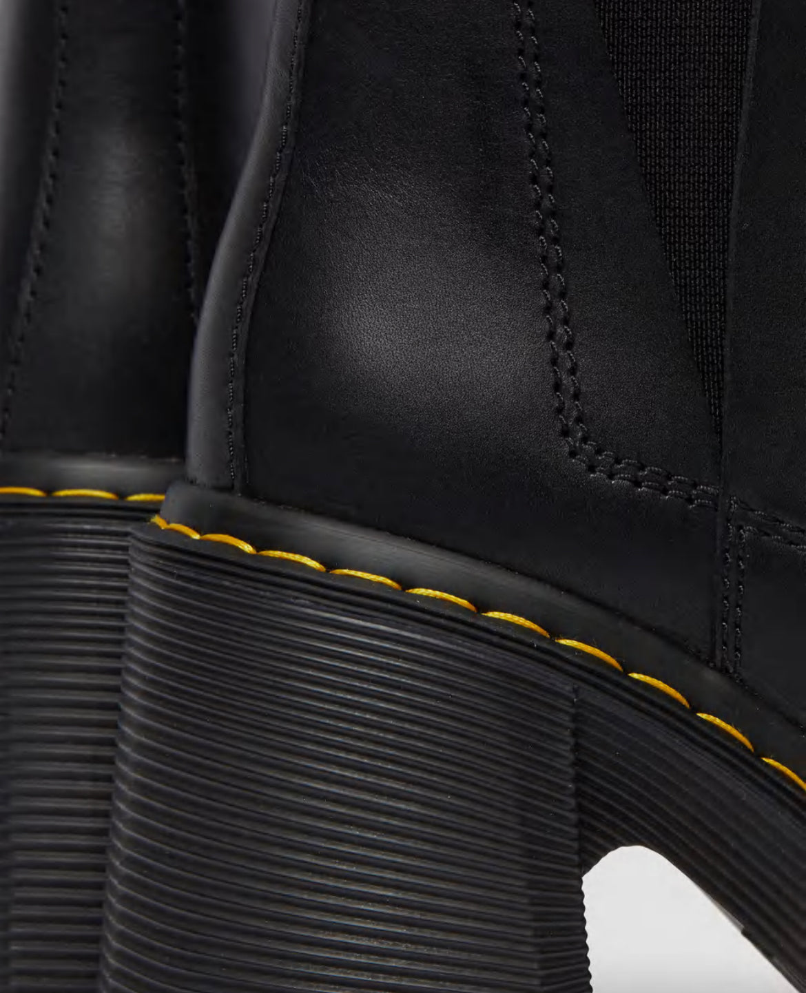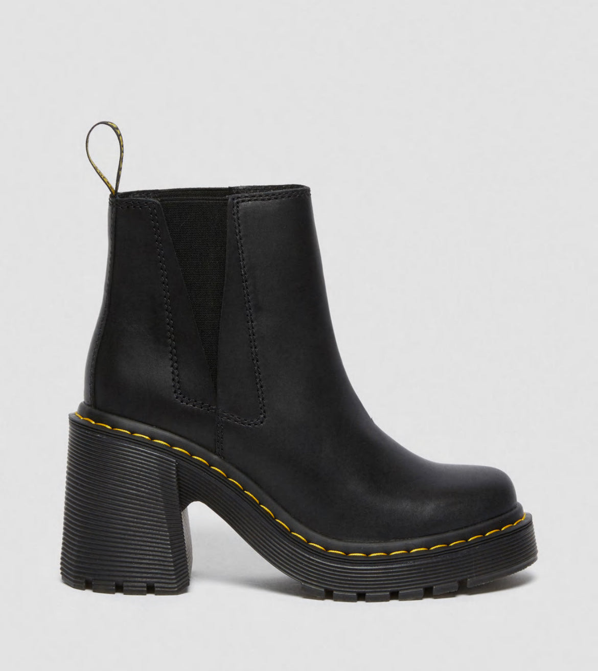 Der Dr.Martens Spence ist ein Chelseaboot mit ausgestelltem Absatz und klobigem Design. Dieser Schuh ist aus einem glatten, vollnarbigen Sendal-Leder. Im Gegensatz zu dem klassischen 1460 ist dieser Schuh von Beginn an weich und bequem. Die Absatzhöhe beträgt 8,6 cm.