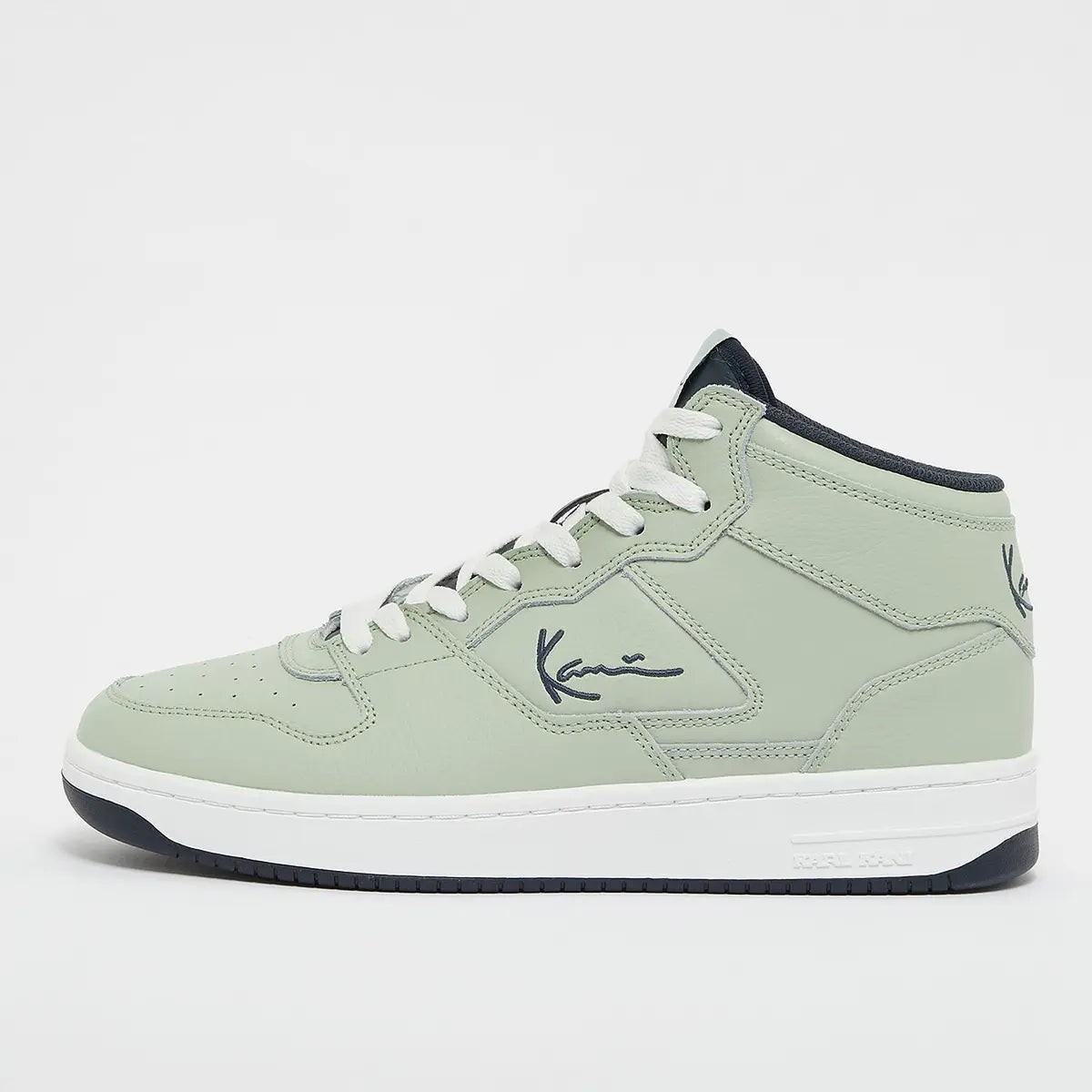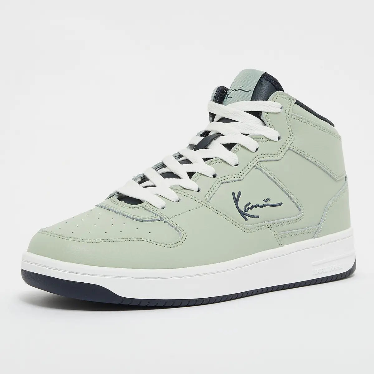 Der 89 High von Karl Kani mit Signature Logo. Dieser High Top Sneaker im Basketball Style ist super bequem durch den gepolsterten Schafft und die gedämpfte Sohle. Das Obermaterial ist aus Leder, Synthetik und Textil. Falls du wegen der Größe unsicher bist, dieser Schuh fällt klein aus.