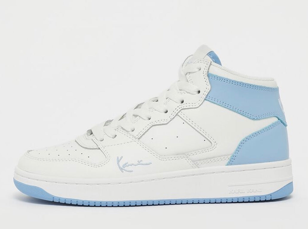 Der 89 High von Karl Kani in Bicolor mit Signature Logo. Dieser High Top Sneaker im Basketball Style ist super bequem durch den gepolsterten Schafft und die gedämpfte Sohle. Das Obermaterial ist aus Leder, Synthetik und Textil. Falls du wegen der Größe unsicher bist, dieser Schuh fällt klein aus.
