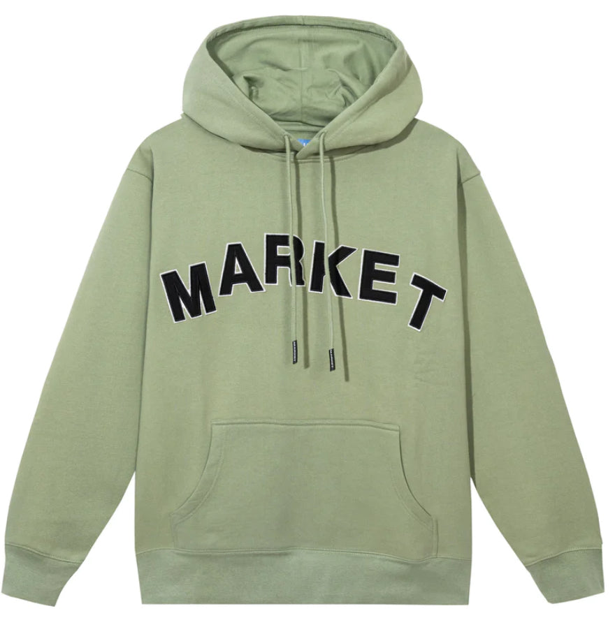 Cooler Hoodie von Market mit buntem Front- und Backprint. Die Hoodies und Sweater werden unisex getragen.