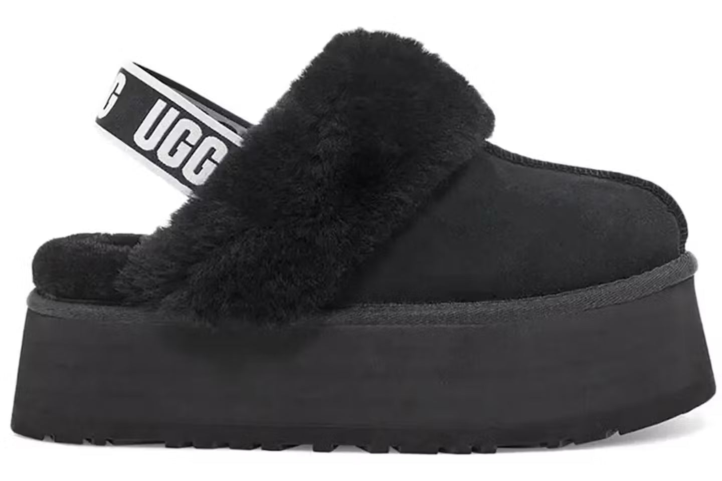 Funkette, der kuschelig, weiche Hausschuh von UGG. Das Material ist aus Veloursleder und Lammfell und die Plateausohle aus Gummi. Der perfekte Begleiter für einen gemütlichen Winter.